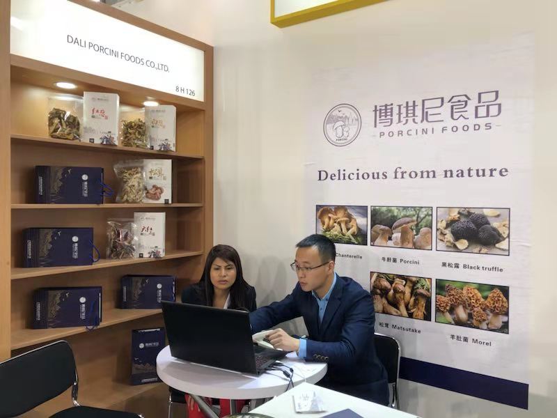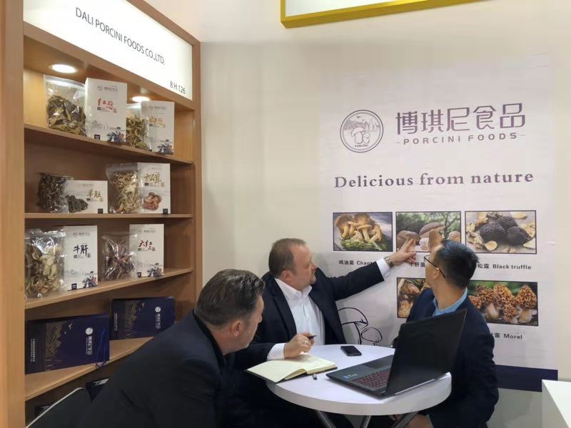 展會(huì)第一天,外國(guó)客商在博琪尼食品有限公司展位前紛紛駐足,詢問產(chǎn)品相關(guān)信息,了解產(chǎn)品質(zhì)量、規(guī)格等,客商們對(duì)博琪尼食品公司優(yōu)質(zhì)的產(chǎn)品質(zhì)量及豐富的出口經(jīng)驗(yàn)給予充分肯定。其中,來(lái)自波蘭的客商Stanistaw Tomkowiak及其合伙人與博琪尼總經(jīng)理龔瑞波進(jìn)行洽談之后,就公司主營(yíng)產(chǎn)品速凍牛肝菌達(dá)成合作意向,初步訂購(gòu)數(shù)量為兩個(gè)柜,并有意簽署長(zhǎng)期合作合同。法國(guó)客商April對(duì)博琪尼出口產(chǎn)品速凍松茸頗為感興趣,表示在法國(guó)越來(lái)越多的餐廳選擇用優(yōu)質(zhì)松茸及牛肝菌作為輔材加入到菜品當(dāng)中,并受到食客的喜愛,法國(guó)對(duì)菌類的需求有增無(wú)減,希望與博琪尼達(dá)成合作,將中國(guó)的優(yōu)質(zhì)菌類帶給法國(guó)人民。